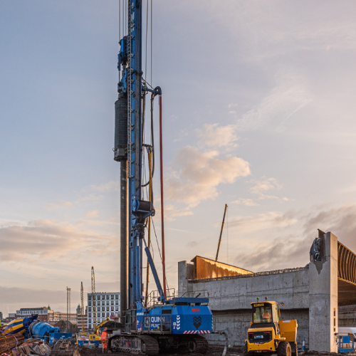 Graham’s involvement in the site consisted of 2 contracted phases of work. Firstly, The “Belfast Transport Hub Enabling Works Project” where they completed essential early engineering works to prepare the site for construction. The Second stage, “Belfast Transport Hub Busway Bridge & Ramps Project” included the development of a Busway Bridge to facilitate access to the new station. Quinn Piling were subcontracted by Grahams to complete the necessary Piling works required for both stages of the project.