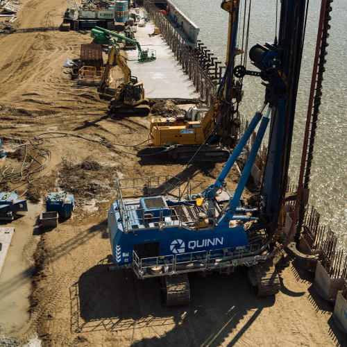 Quinn Piling were awarded the contract to install the piling for Berth 4 at London Gateway Logistics Hub for DP World, which is designed to accommodate the world’s largest vessels. The site is located on the former shell oil refinery site on the north bank of the River Thames.
